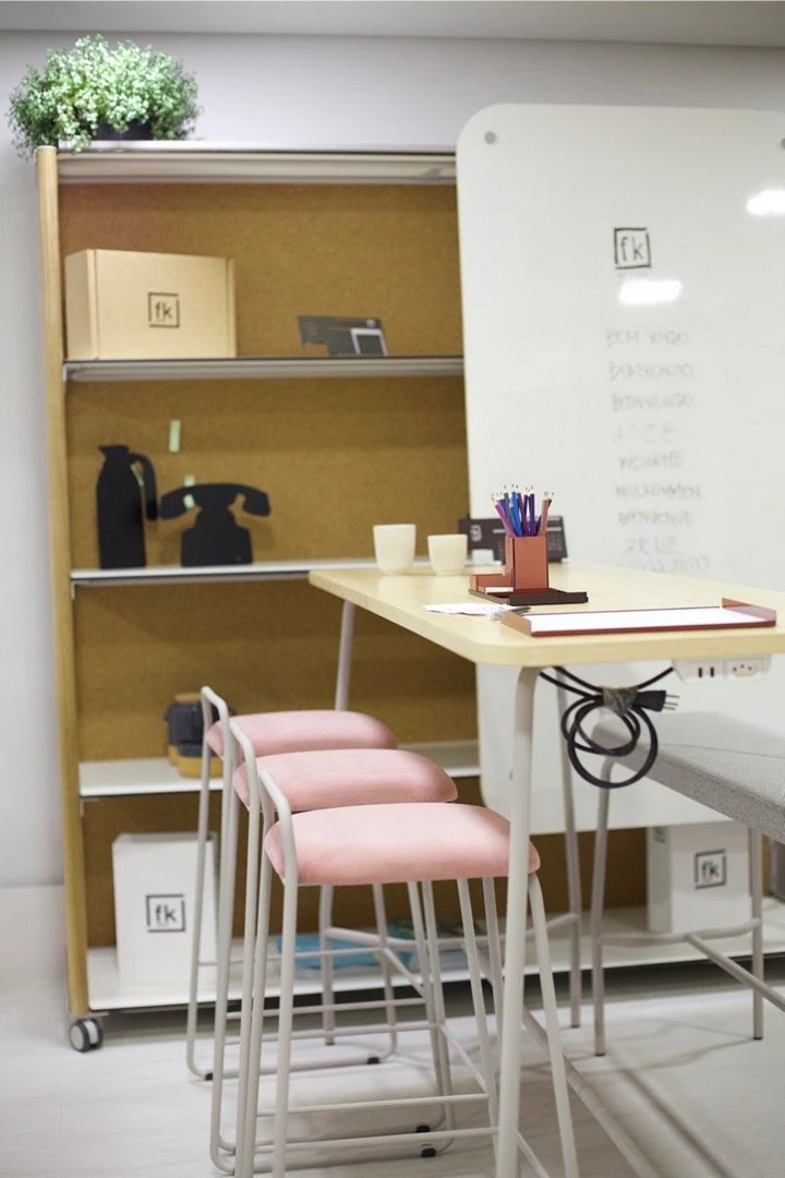 Indicada para salas de reunião, espaços colaborativos, áreas informais e ambientes corporativos que demandam apoio funcional.