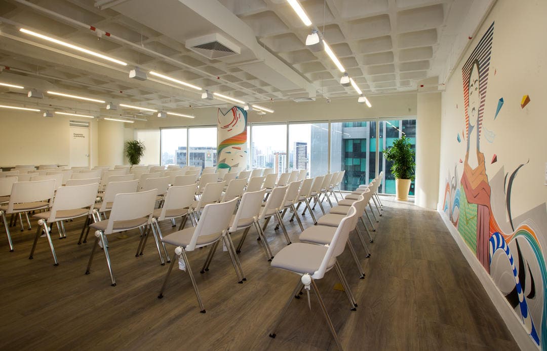 É indicada para salas de treinamento, ambientes educacionais, auditórios, áreas corporativas e espaços coletivos.