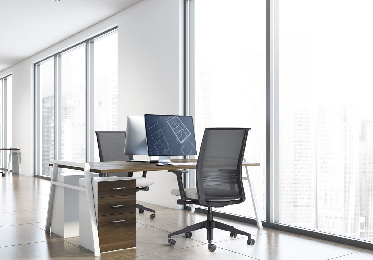 A Cadeira Athena foi pensada para quem passa longos períodos em frente à estação de trabalho. O encosto em tela favorece a ventilação e mantém o conforto ao longo do dia, enquanto o apoio lombar contribui para uma postura mais estável.