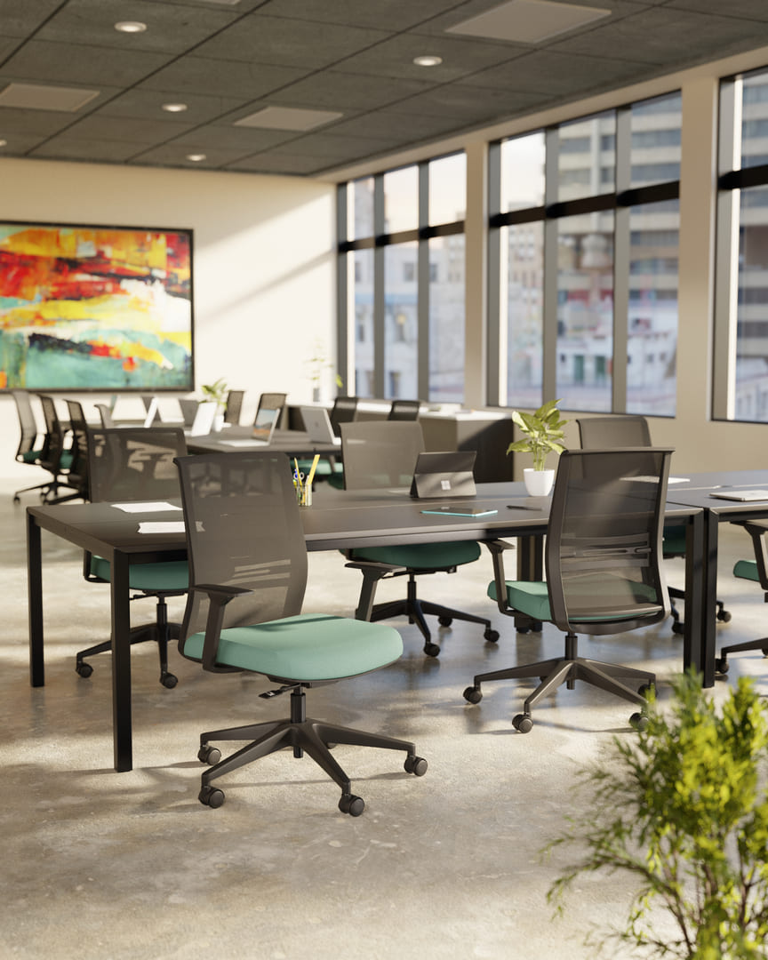 Os ajustes de profundidade, altura e travamento do mecanismo permitem adaptar a cadeira ao usuário e à atividade, sem comprometer a fluidez do ambiente ou a padronização visual do espaço.