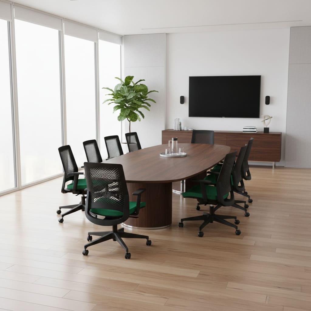 O assento estofado, aliado à estrutura bem dimensionada, oferece apoio consistente para diferentes perfis de usuário, mantendo estabilidade e boa leitura visual no ambiente de trabalho.