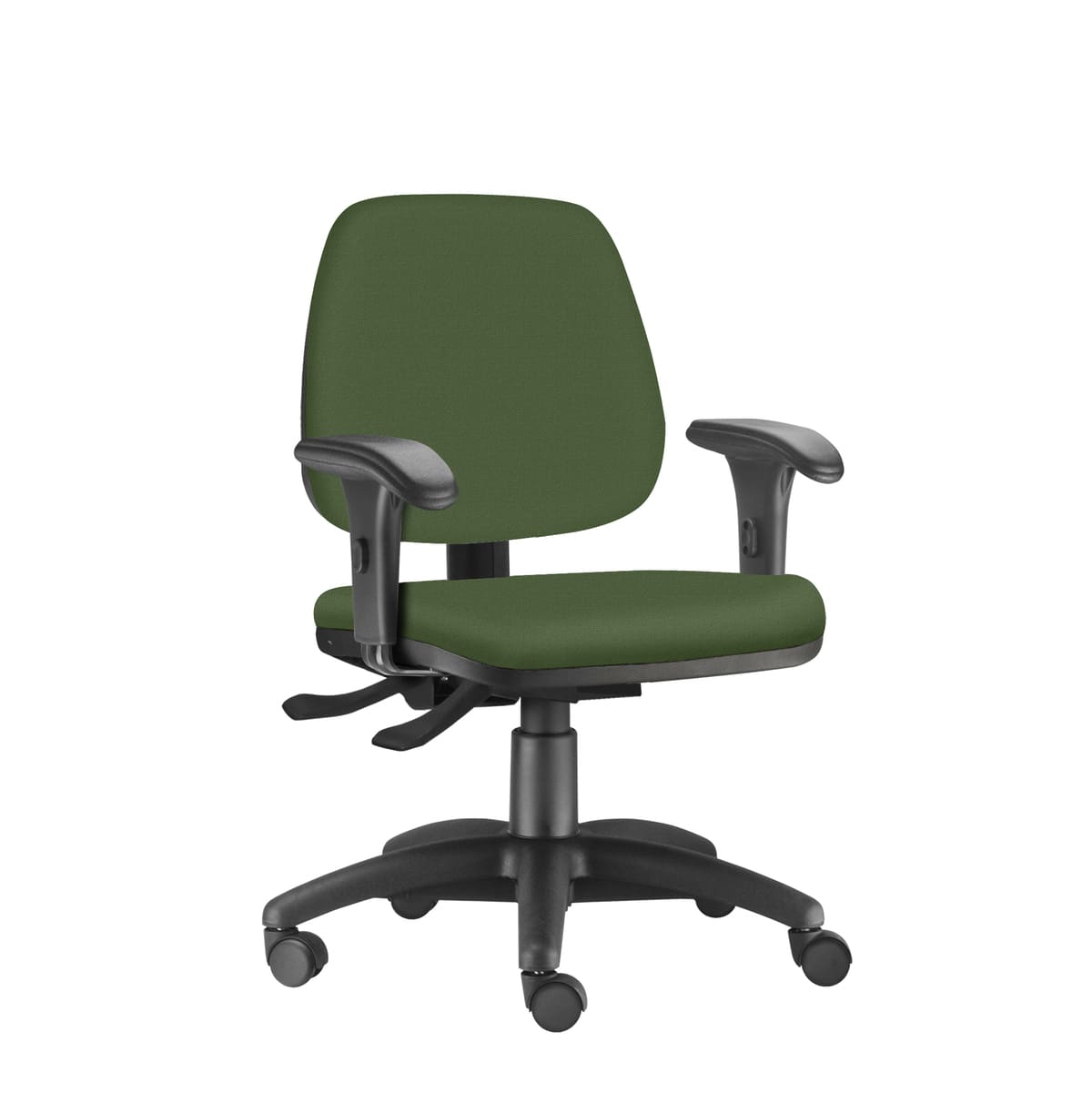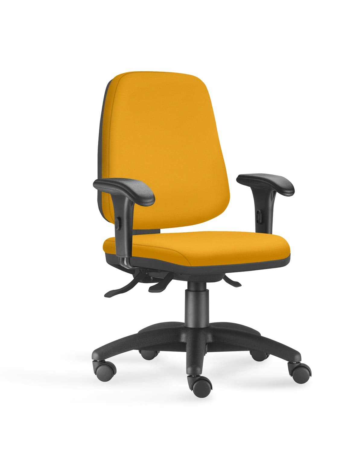 Sistema Evolution (contato permanente) com ajuste de altura e inclinação do encosto e regulagem de altura do assento.