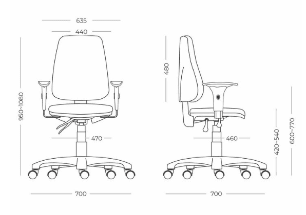 A disponibilidade de duas versões permite ajustar a cadeira às dimensões do espaço e ao perfil do usuário, sem alterar a lógica de uso e a ergonomia do conjunto.