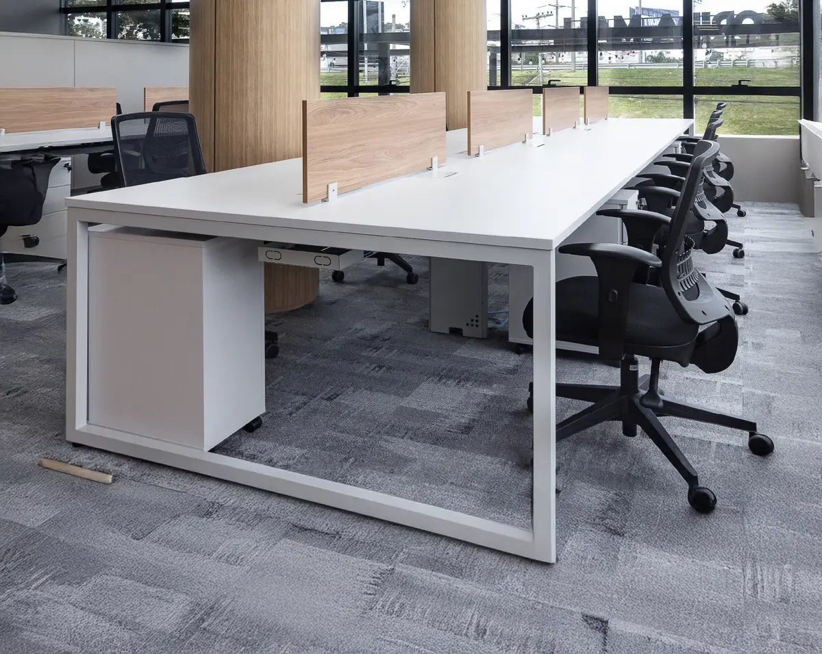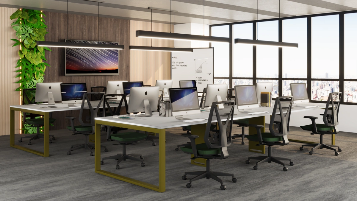 É indicada para escritórios operacionais, áreas de trabalho compartilhadas e ambientes corporativos que exigem padronização e organização do layout.