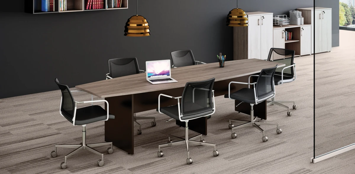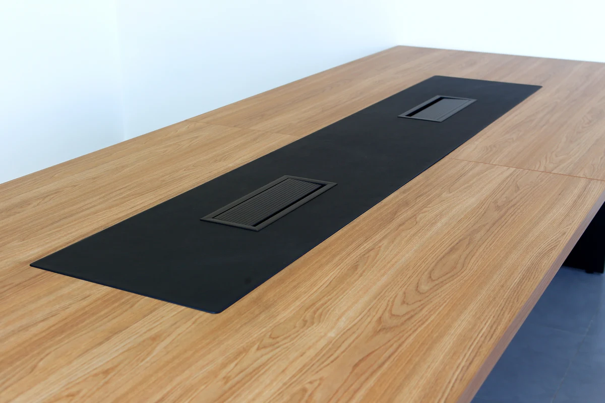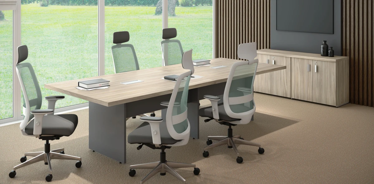 Disponível em formatos retangulares, ovais ou semi-ovais, o modelo se adapta a diferentes tamanhos de sala e quantidade de usuários. A possibilidade de integração com sistemas de eletrificação embutida facilita o uso de notebooks, projetores e equipamentos de apoio sem interferir na estética do ambiente.