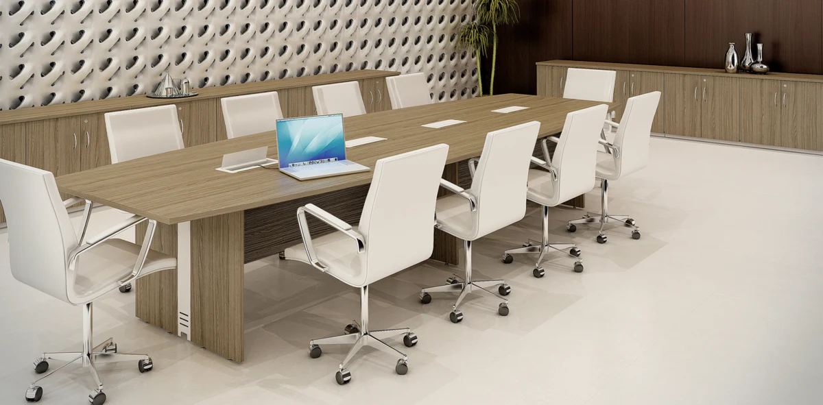 Mesa de Reunião Pé Painel em ambientes corporativos