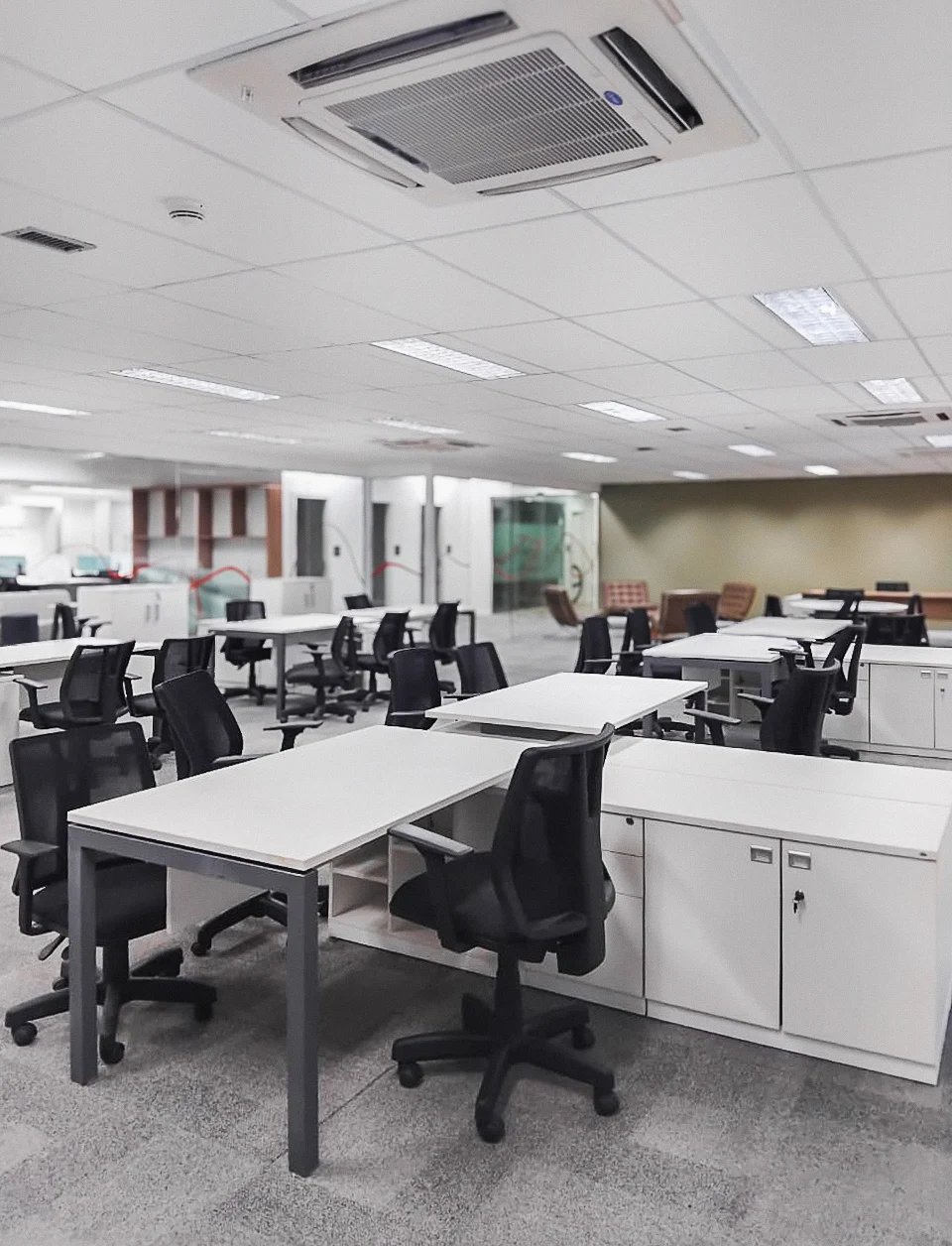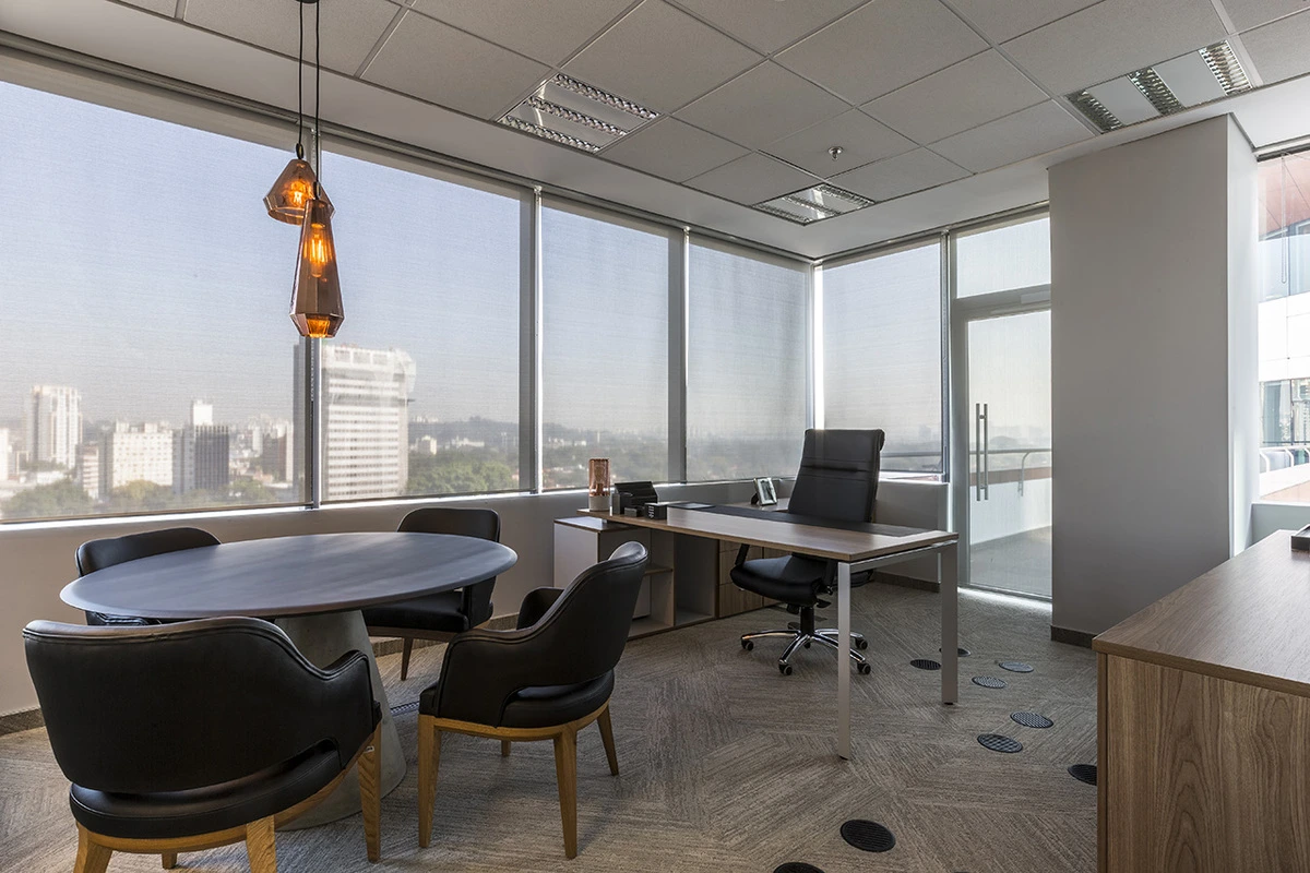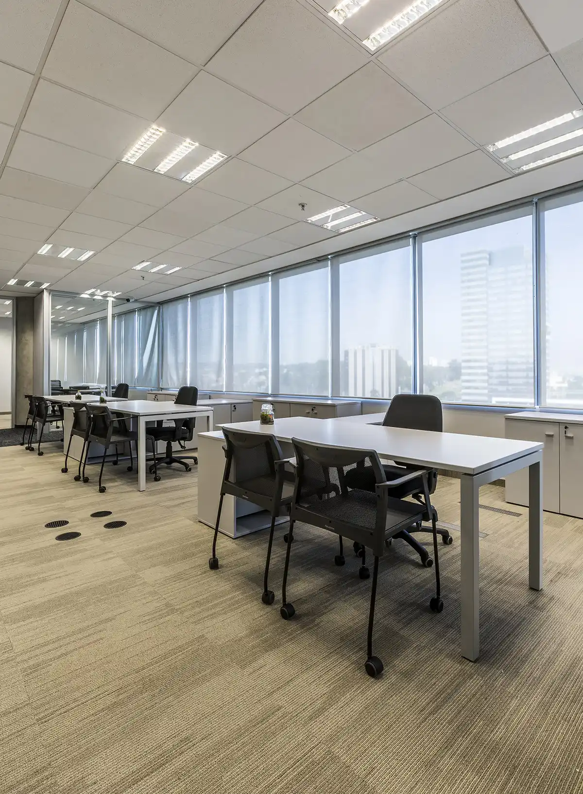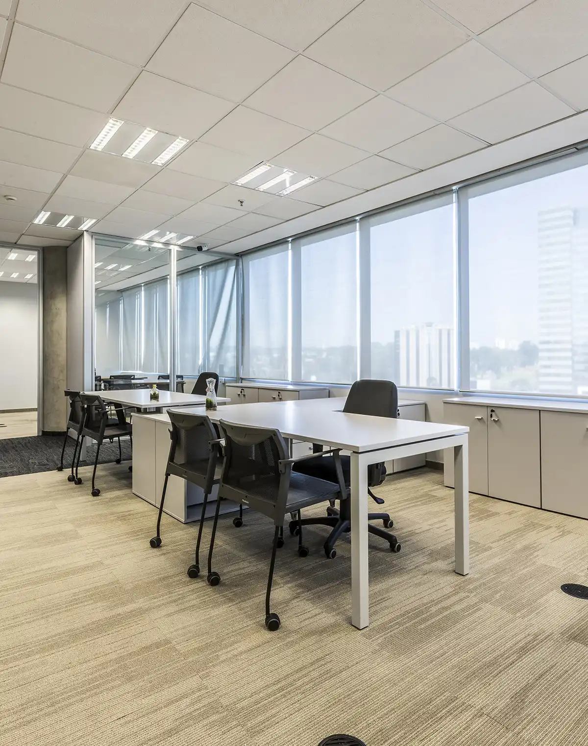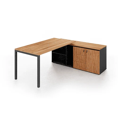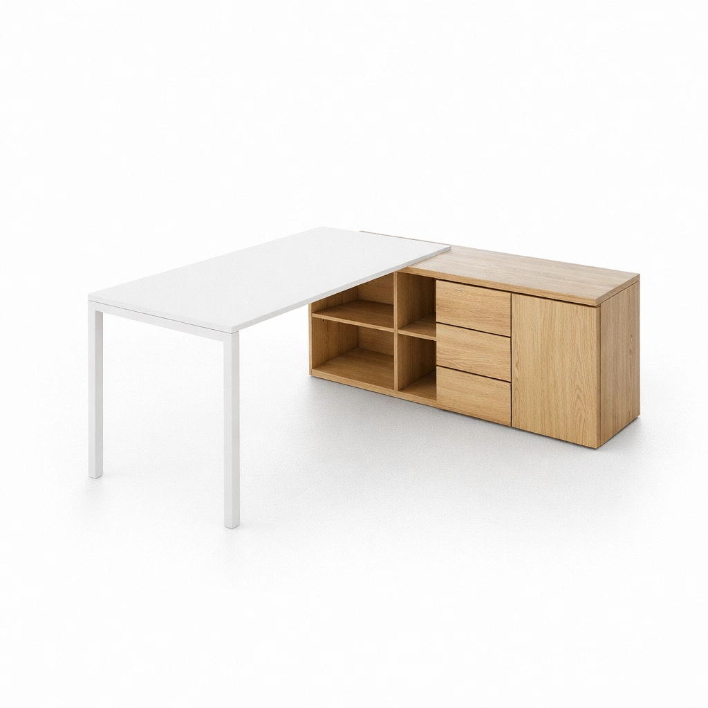 O armário acoplado amplia a funcionalidade da estação executiva, oferecendo armazenamento estratégico sem comprometer a ergonomia. Com opções de lado direito ou esquerdo, a configuração se adapta ao layout do ambiente e à dinâmica do usuário.