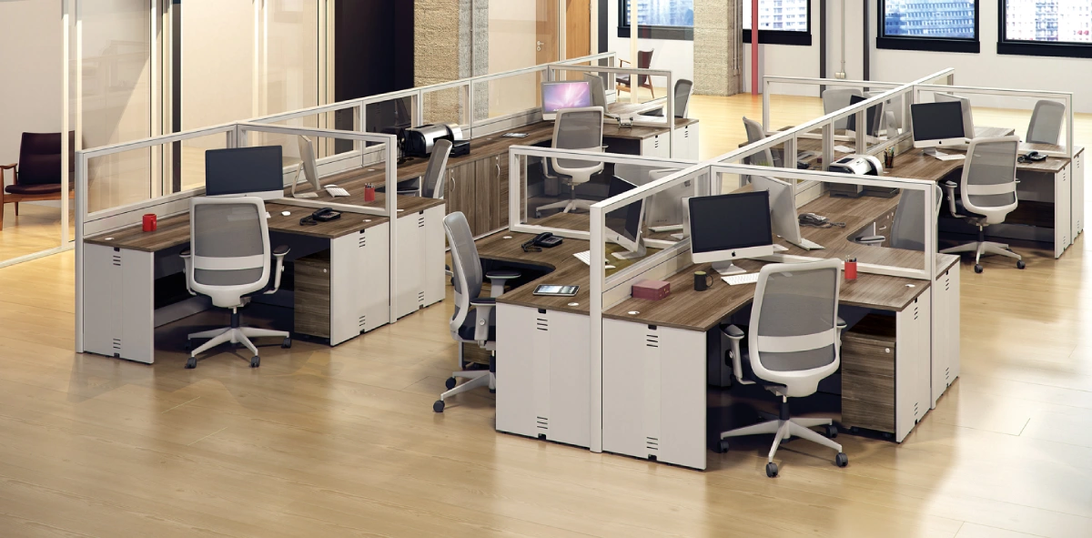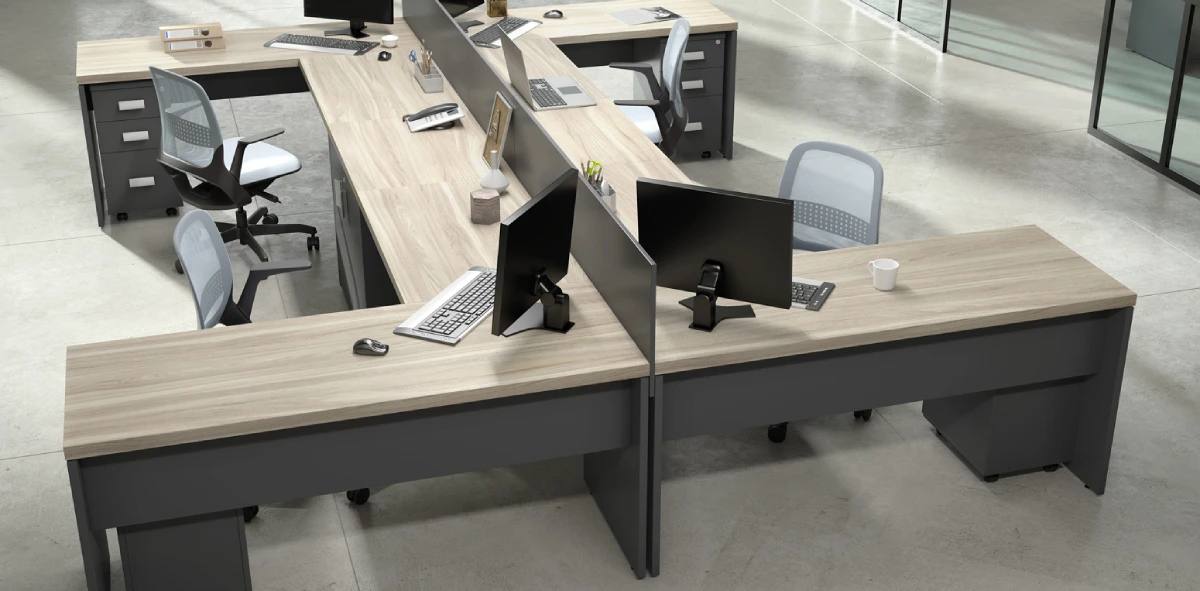 Mesa em L | Pé Painel em ambientes corporativos