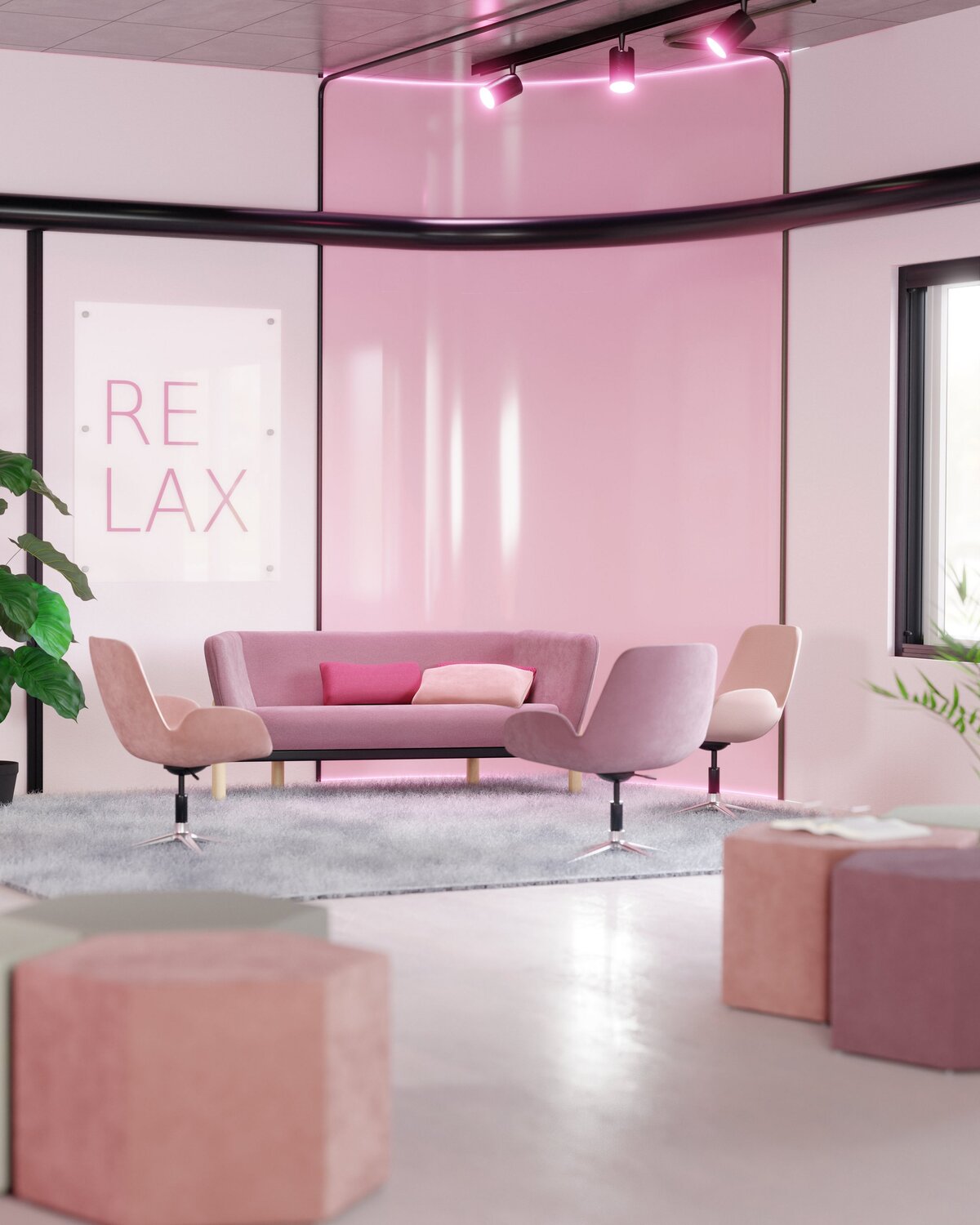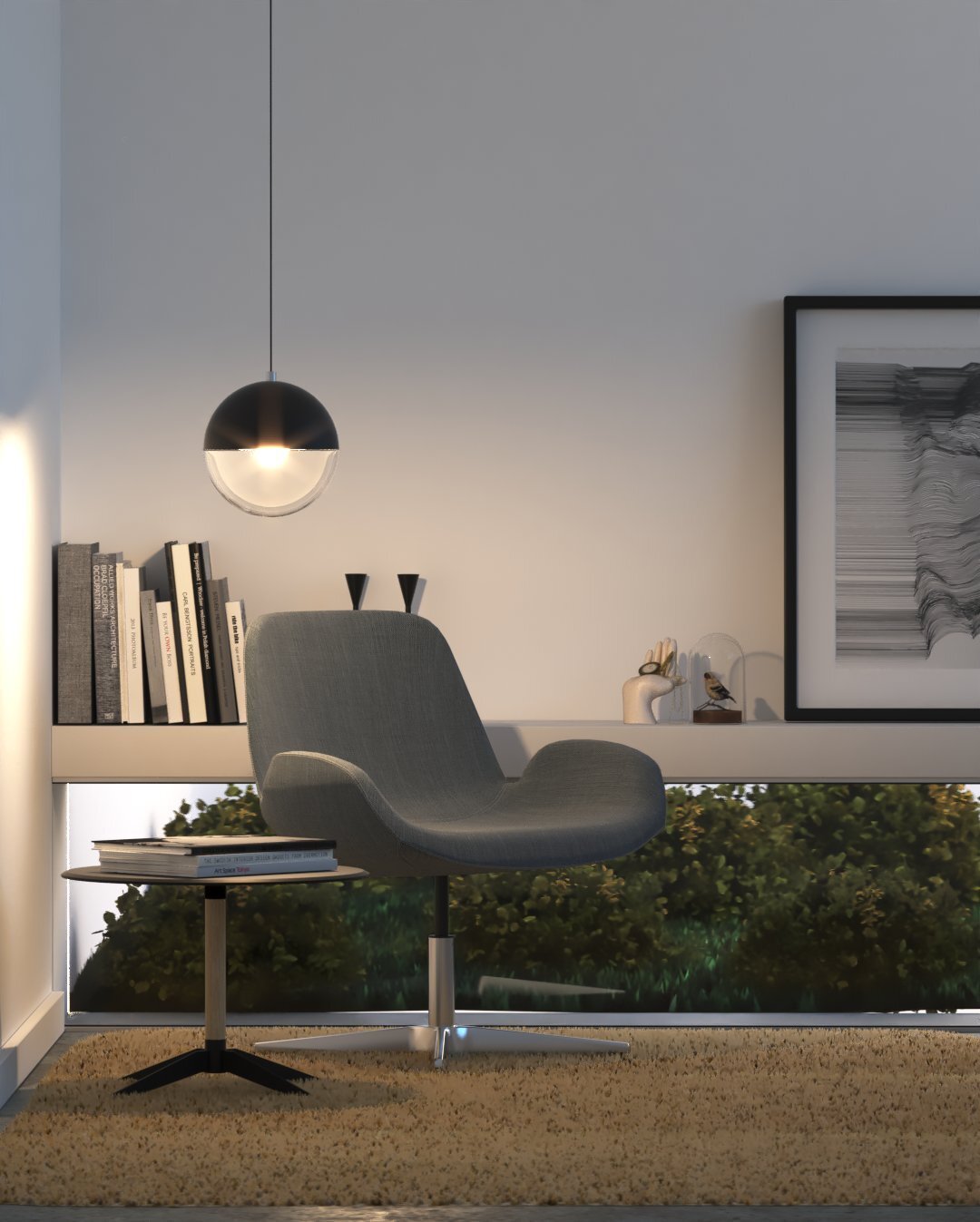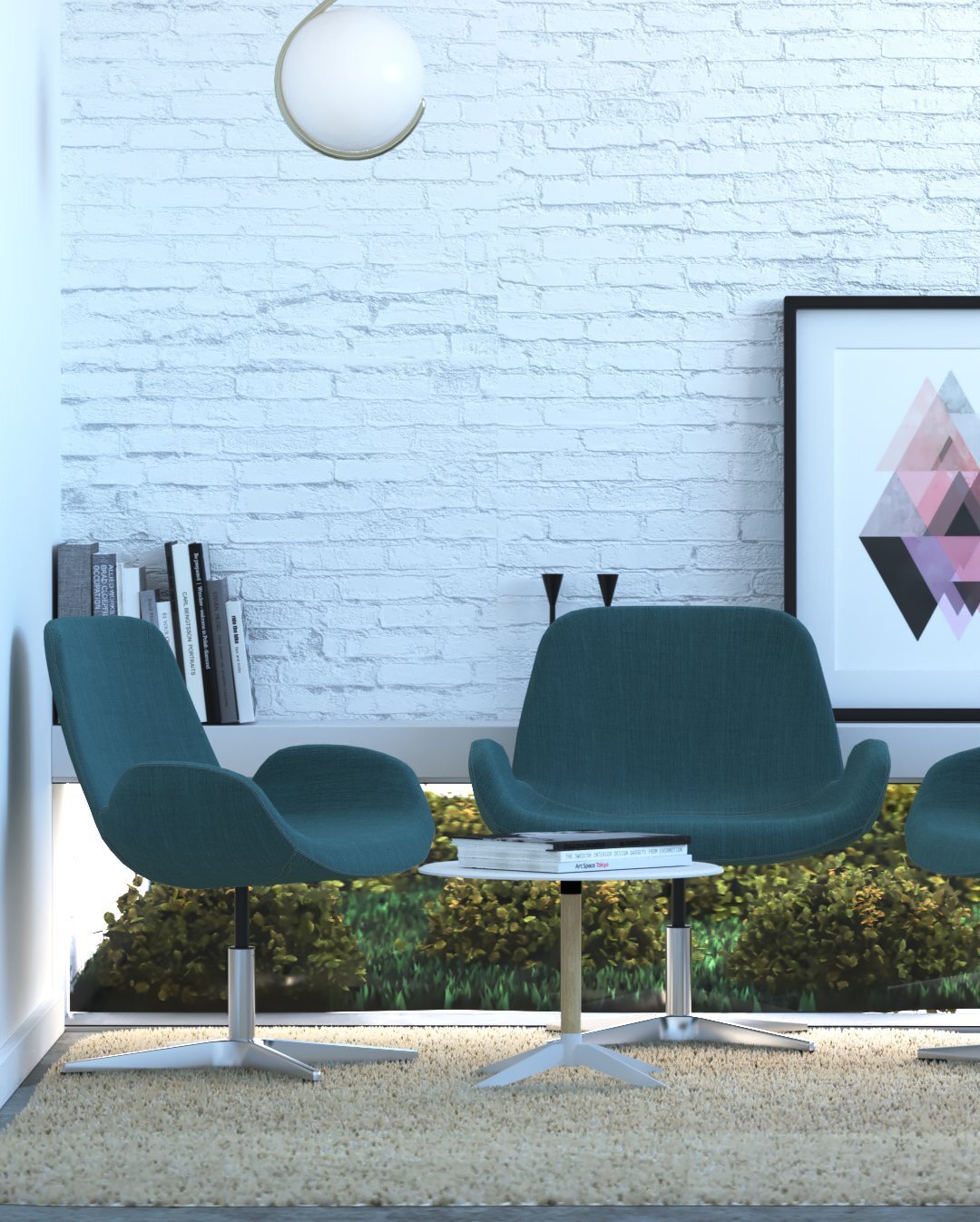 Pode ser aplicada em escritórios executivos, salas de reunião informais, áreas colaborativas, espaços de espera e ambientes residenciais.