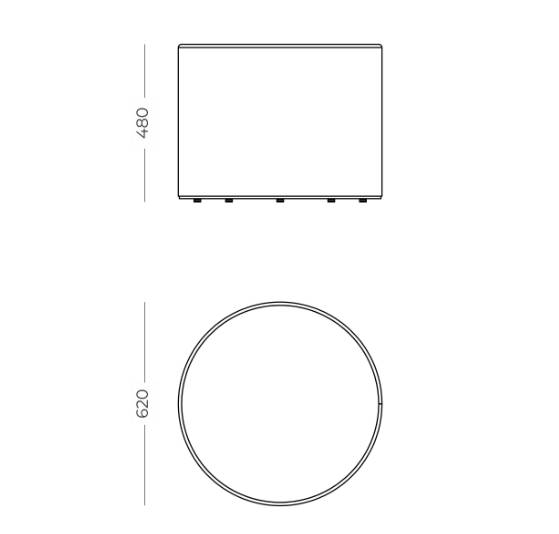 Diâmetro: 620; Altura total: 480