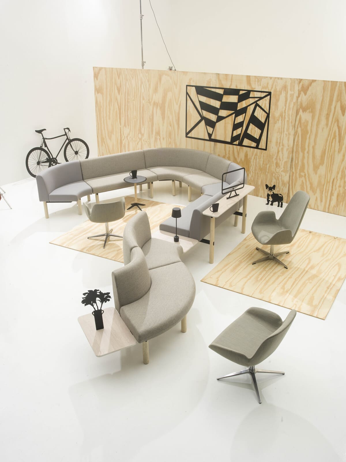 A variedade de módulos disponíveis permite que o Modular Imperador seja aplicado em áreas de convivência, recepções, espaços colaborativos e ambientes de espera.