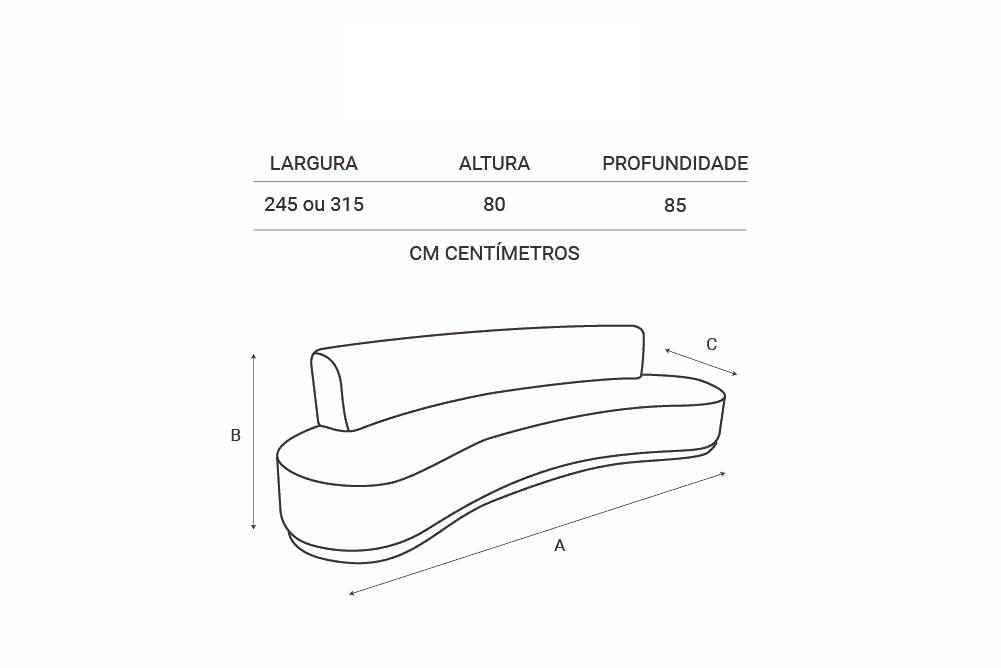 Larguras disponíveis: 245 | 315 cm; Altura: 80 cm; Profundidade: 85 cm