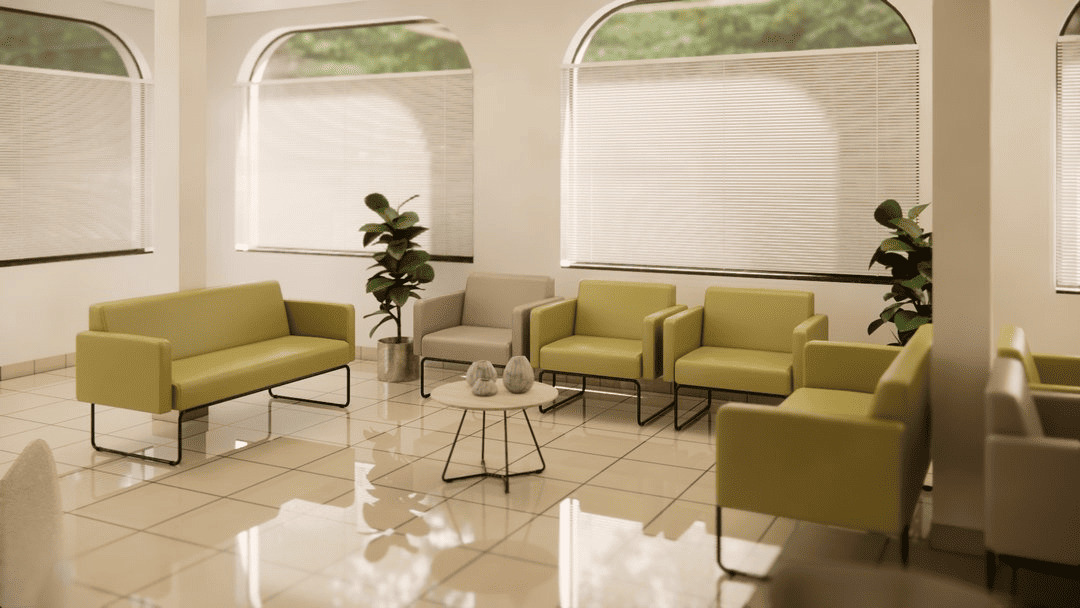 É indicado para ambientes corporativos como recepções, áreas de convivência, espaços colaborativos e áreas de espera.